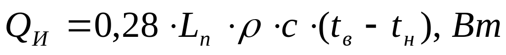 где Lр - расход удаляемого воздуха, не компенсируемый подогрет приточным воздухом: