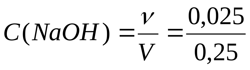 = 0,1+ 0,15 = 0,25л. Концентрация щелочи