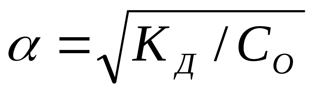 Степень диссоциации рассчитывают на основании закона разбавления Оствальда: