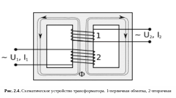 На одну из обмоток, называемую первичной обмоткой, подаётся напряжение от внешнего источника. Протекающий по первичной обмотке переменный ток намагничивания создаёт переменный магнитный поток в магнитопроводе. В результате электромагнитной индукции, переменный магнитный поток в магнитопроводе создаёт во всех обмотках, в том числе и в первичной, ЭДС индукции, пропорциональную первой производной магнитного потока, при синусоидальном токе сдвинутой на 90° в обратную сторону по отношению к магнитному потоку.