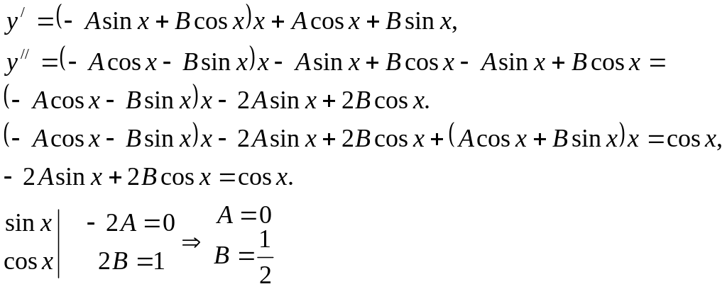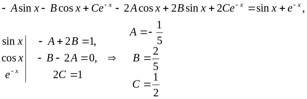 Этот метод применим только к линейным уравнениям с постоянными коэффициентами и только в том случае, когда его правая часть имеет специальный вид. По виду правой части уравнения записывают ожидаемую форму частного решения с неопределёнными коэффициентами, затем подставляют её в уравнение и из полученного тождества находят значения коэффициентов.