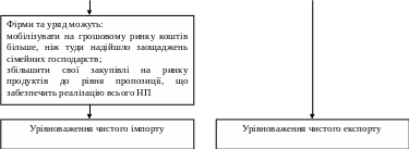 Якщо обсяги потоків відпливу і припливу грошей будуть урівноважуватися, то потоки національного доходу і реалізації національного продукту збалансуються.