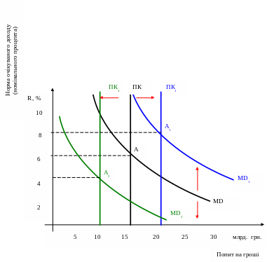 - •В плив на грошовий ринок змін у попиті на гроші (на прикладі зміни внп)