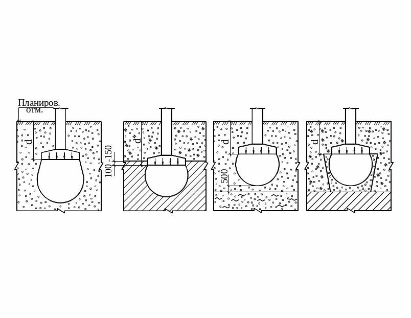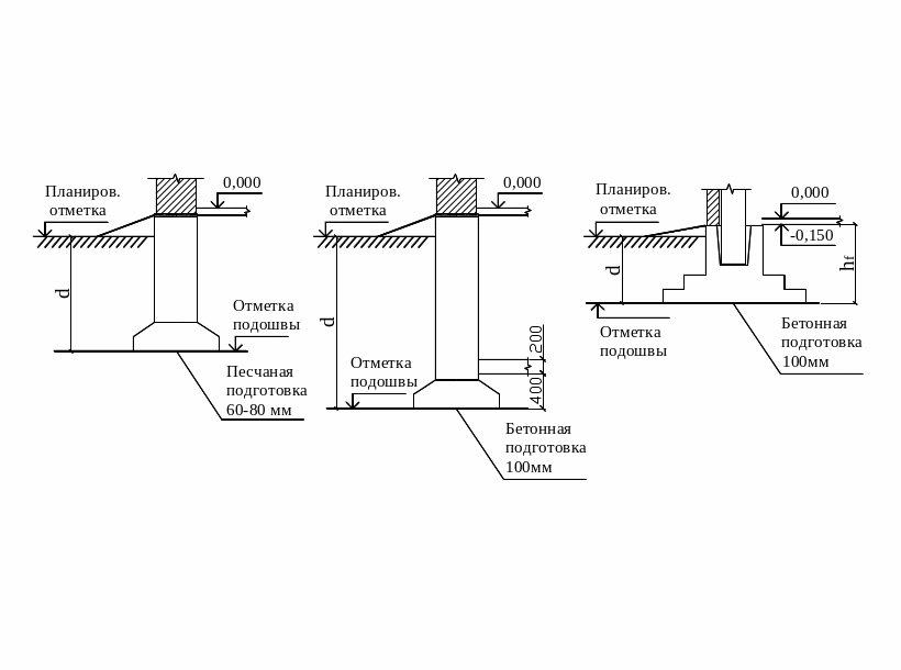 Рисунок 6.1 Примеры вариантов устройства оснований и фундаментов.
