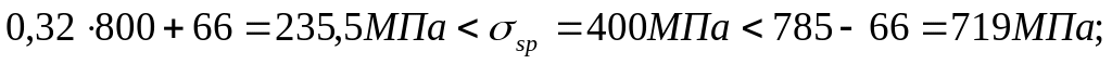 где р – допустимое отклонение преднапряжения; р=30+360/10=66МПа;