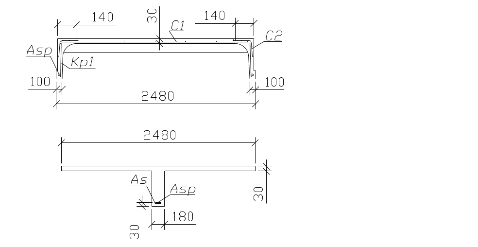 Плиту рассматриваем как свободно лежащую на двух опорах балку П-образного поперечного сечения, которое приводится к тавровому сечению с полкой в сжатой зоне.