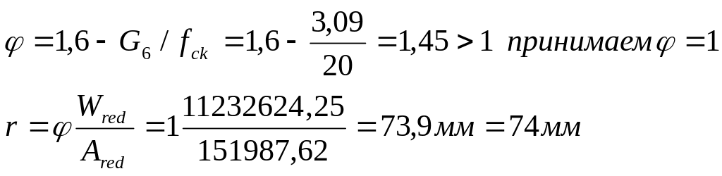 r – Расстояние от центра тяжести приведенного сечения до ядровой точки;