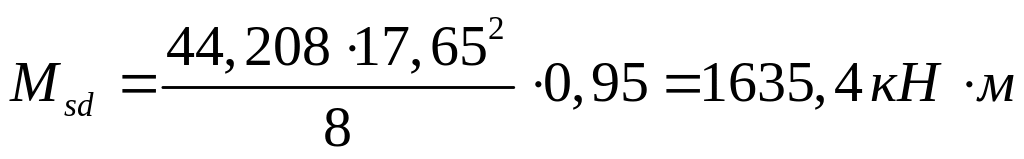 Максимальный момент от полной расчетной нагрузки в середине пролета