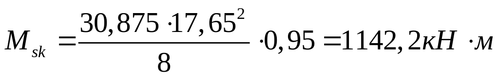 Максимальный момент от полной нормативной нагрузки в середине пролета
