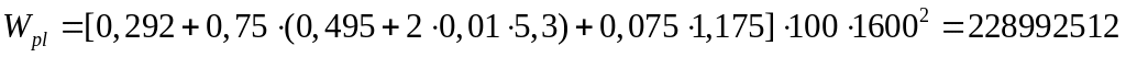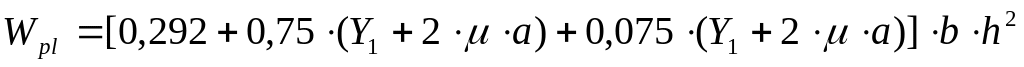 Момент сопротивления сечения для нижней грани балки с учетом неупругих деформаций бетона: