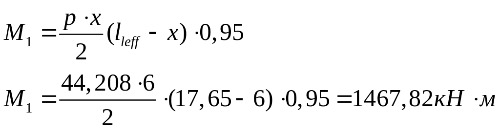 Вычисляем изгибающие моменты и поперечные силы с учетом коэффициента надежности по значению γn=0,95: