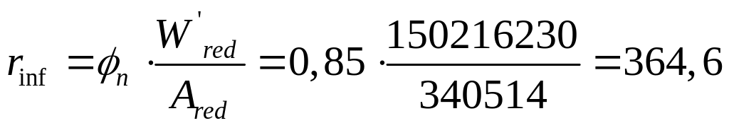Расстояние от центра тяжести приведенного сечения до нижней ядровой точки: