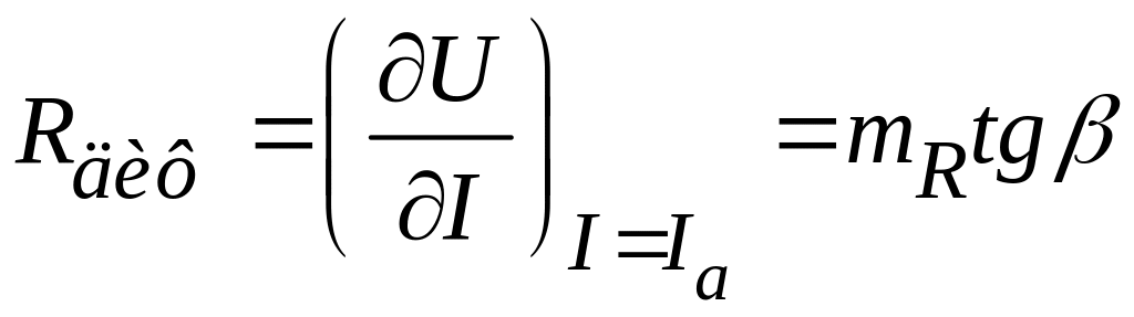 Дифференциальное сопротивление определяется производной к ВАХ в точке А, т.е. тангенсом угла наклона касательной в точке А.