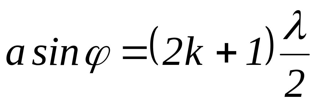 В центре экрана, которому соответствует угол φ=0, наблюдается центральный максимум, так как все вторичные волны приходят в центр в одинаковой фазе.