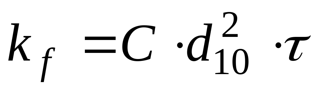 d10 - діаметр частинок, який установлюють за кривою гранулометричного складу піску (див. роботу № 4);