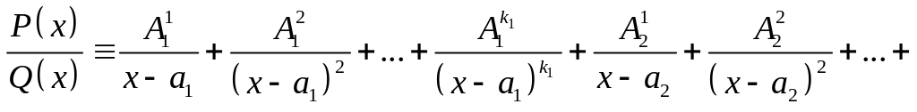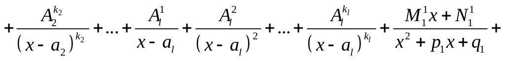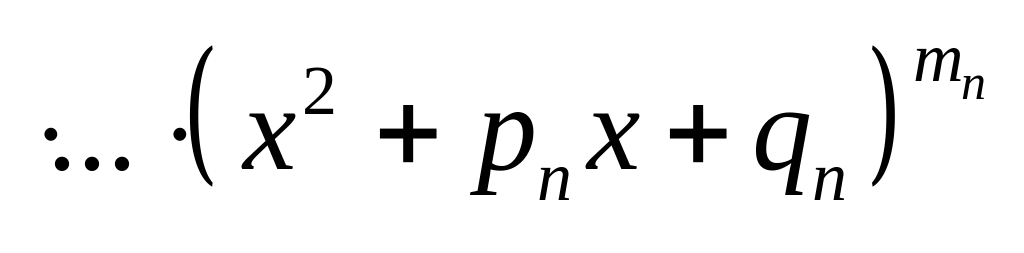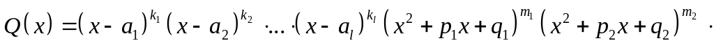 Отметим, что главной трудностью при интегрировании рациональных дробей является разложение многочлена на произведение неприводимых сомножителей, т.е. отыскание вещественных и комплексных корней многочлена .