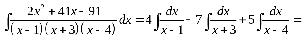 Так как под интегралом имеем правильную дробь, то согласно теореме она разлагается на простые дроби следующим образом: