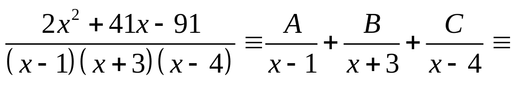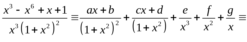 Приравниваем коэффициенты при одинаковых степенях в числителях правой и левой частей тождества: