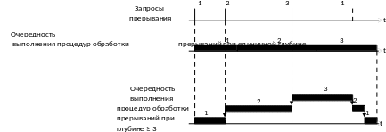 Рис.10.5 Иллюстрация работы систем прерывания с различной глубиной