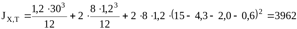 Геометрические характеристики ослабленного сечения (в месте стыка уголков) относительно оси хT - хT