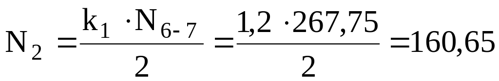 N1 = k1 - 2 n = 1,2 267,75 – 2 104,32 = 1126,6 кН;