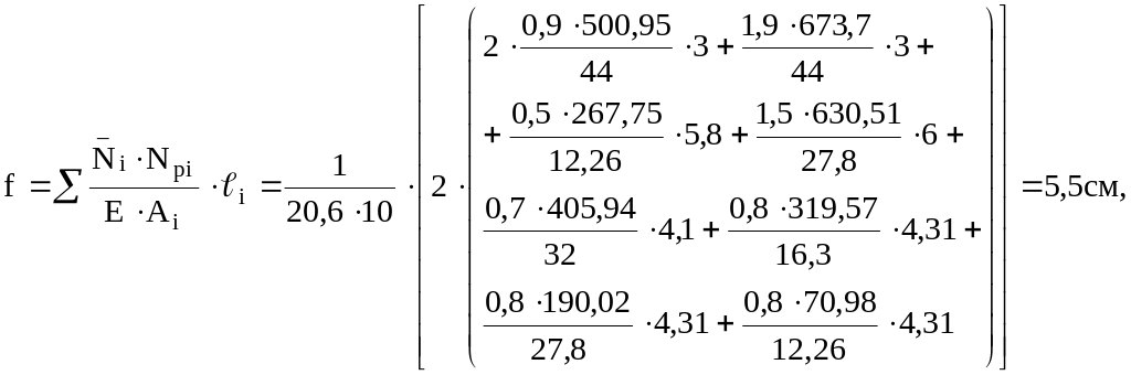 где Ni – усилия в i-м стержне от единичной силы Р = 1;