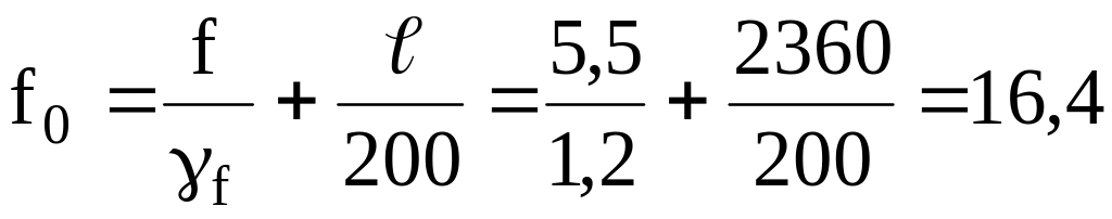 fи - вертикальный предельный прогиб, принимаемый по 3 таблица 19.
