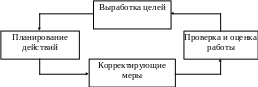 В настоящее время западными учеными предлагается цикл управления фирмой, состоящий из четырех этапов (рис. 11). В частности, такую схему предлагают Мескон, Альберт и Хедоури. Однако, по нашему мнению, такое представление является слишком урезанным и для такого крупного объединения как корпорация не подходит, поэтому нами предлагается расширенный цикл управления, содержащий семь этапов (рис. 12).
