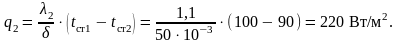 Для бетонной стенки величина плотности теплового потока q2, будет равна: