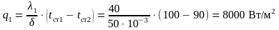 Вычисляем плотность теплового потока для стальной стенки q1: