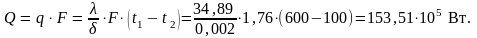 Заменим q выражением (9.17) и окончательно получим формулу для вычисления искомой величины потерь тепла через стенки из красного кирпича: