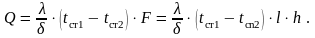 Так как температуры на стенках поддерживаются постоянными, значит, величина плотности теплового потока q на поверхности стенки из кирпича будет постоянной. Поэтому полная величина теплового потока Q (потери тепла) прошедшее через поверхность равную F = l · h определяется по уравнению (9.5").