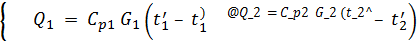 где Q1 и Q2 – количество тепла, отдаваемое горячим и воспринимаемое холодным теплоносителем; ∆Q – потери тепла в окружающую среду; k – коэффициент теплопередачи; t1, t2 – температуры теплоносителей; F – площадь поверхности теплообмена.