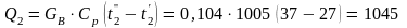 Количество теплоты, воспринятого воздухом от горячей воды при её охлаждении составляет