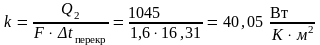 где k - искомый коэффициент теплопередачи теплообменного аппарата.