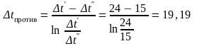 а средний логарифмический температурный напор для противоточной схемы движения теплоносителей равен: