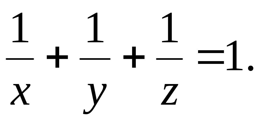 Следовательно, данное уравнение без учета перестановок имеет три решения: (3, 3, 3), (2, 4, 4), (2, 3, 6)