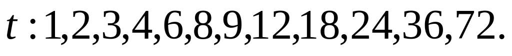 должно быть делителем числа 72. Возможные