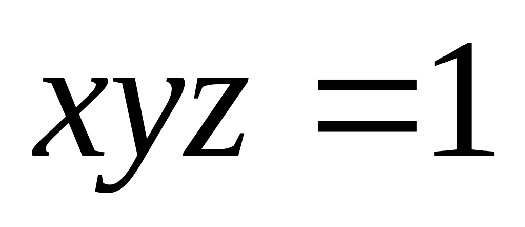 2) Исследуем возможные наборы трех целых чисел, которые в произведении дают 1. Это могут быть тройки (1,1,1), (1,-1,-1), (-1,-1,1), (-1,1,-1).