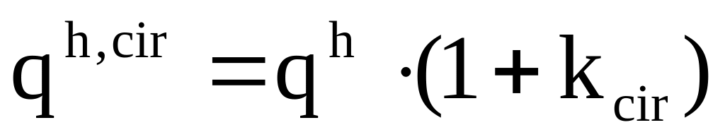 где kcir – коэффициент, принимаемый для водонагревателей и начальных участков сети до первого водоразборного стояка по обязательному приложению 5 [1]; для остальных участков сети – равным нулю.