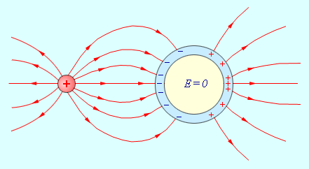 Все внутренние области проводника, внесенного в электрическое поле, остаются электрически нейтральными. Если удалить некоторый объем, выделенный внутри проводника, и образовать пустую полость, то электрическое поле внутри полости будет равно нулю. На этом основана электростатическая защита – чувствительные к электрическому полю приборы для исключения влияния поля помещают в металлические ящики.