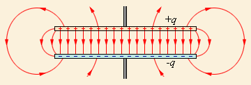 Плоский конденсатор – система из двух плоских проводящих пластин, расположенных параллельно друг другу на малом по сравнению с размерами пластин расстоянии и разделенных слоем диэлектрика. Электрическое поле плоского конденсатора в основном локализовано между пластинами; однако, вблизи краев пластин и в окружающем пространстве также возникает сравнительно слабое электрическое поле, которое называют полем рассеяния. В целом ряде задач приближенно можно пренебрегать полем рассеяния и полагать, что электрическое поле плоского конденсатора целиком сосредоточено между его обкладками.