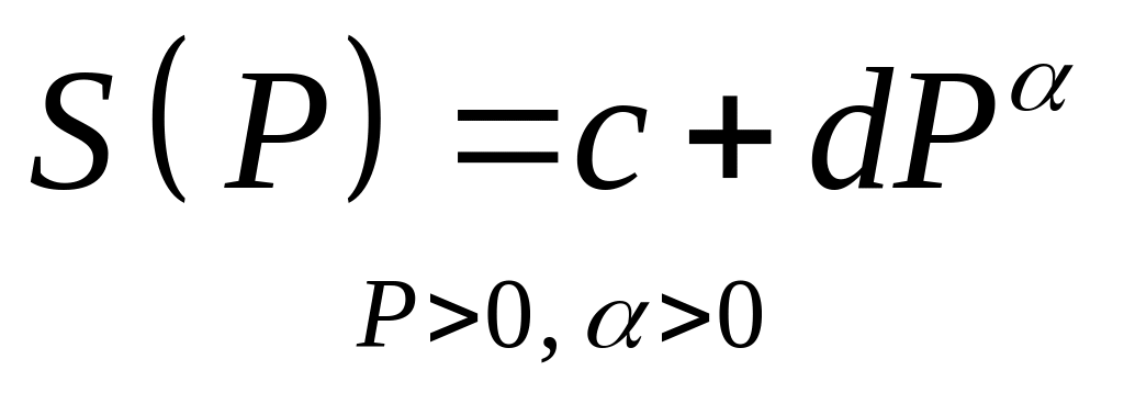 с, d — параметры связи цены и величины предложения, определяемые на основе конкретных наблюдений и статистических вычислений (в частности, методом наименьших квадратов), d - всегда положительная величина