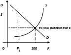 Соответствующая точка пересечения E — точка равновесия P : P = 100; при P < 100 D(Р) > S(P) — на рынке наблюдается дефицит;