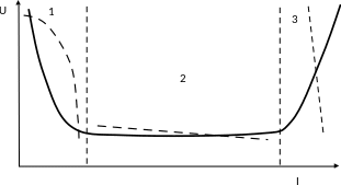 В качестве источников питания при механизированной дуговой сварке используются те же источники, что и при ручной дуговой сварке штучными электродами. Отличительной особенностью является то, что данное оборудование работает при пологих (жёстких) внешних вольтамперных харак-ках (обл.2)