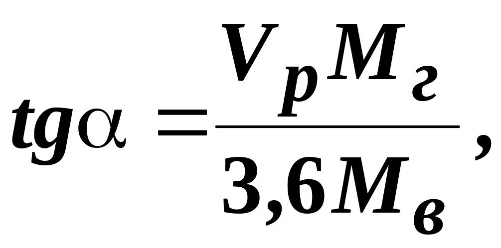 3. Определение угла наклона лент времени на графике координированного регулирования. Тангенс угла наклона лент времени α на графике соответствует расчётной скорости и определяется по формуле