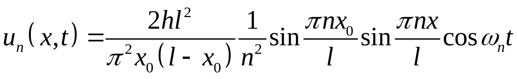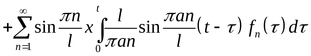 Таким образом, решение начально-краевой задачи для уравнения колебаний в случае однородных граничных условий записывается в следующем виде: