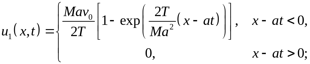 есконечная струна, имеющая в точке сосредоточенную массу , находится в положении равновесия. В начальный момент времени ударом молоточка массе сообщается начальная скорость . Доказать, что в момент времени возмущенная струна имеет вид, указанный на рис. 1, где