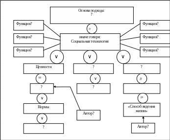 актор, система, подсистема, функция, нормы, ценности, правила поведения, стиль.
