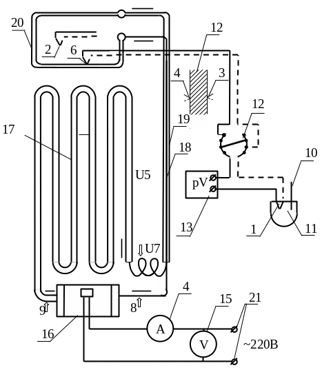 Компрессорный холодильный агрегат (рисунок 3) состоит из моторкомпрессора (16), испарителя (20) и конденсатора (17). В качестве дроссельного устройства используется капиллярная трубка (18), Для уменьшения энергетических потерь предусмотрен регенеративный теплообменник (19).